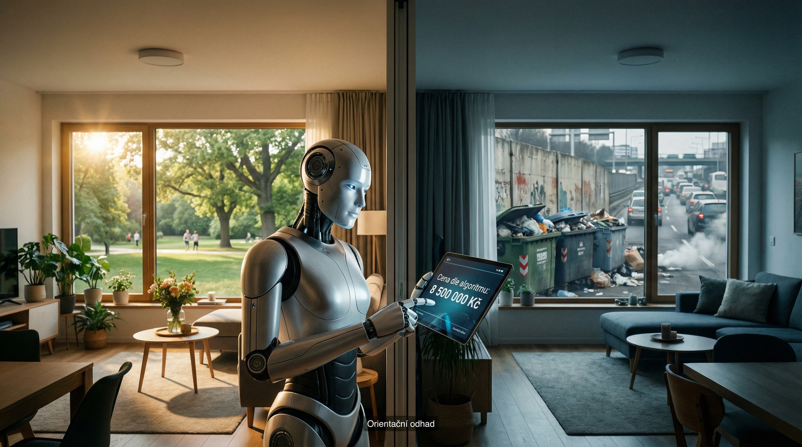 Dva naprosto totožné byty ve stejné ulici mohou mít rozdílnou hodnotu v řádu stovek tisíc korun jen kvůli orientaci oken na světové strany, výhledu nebo klidu v domě. Nic z toho žádný AI nástroj nedokáže zohlednit.