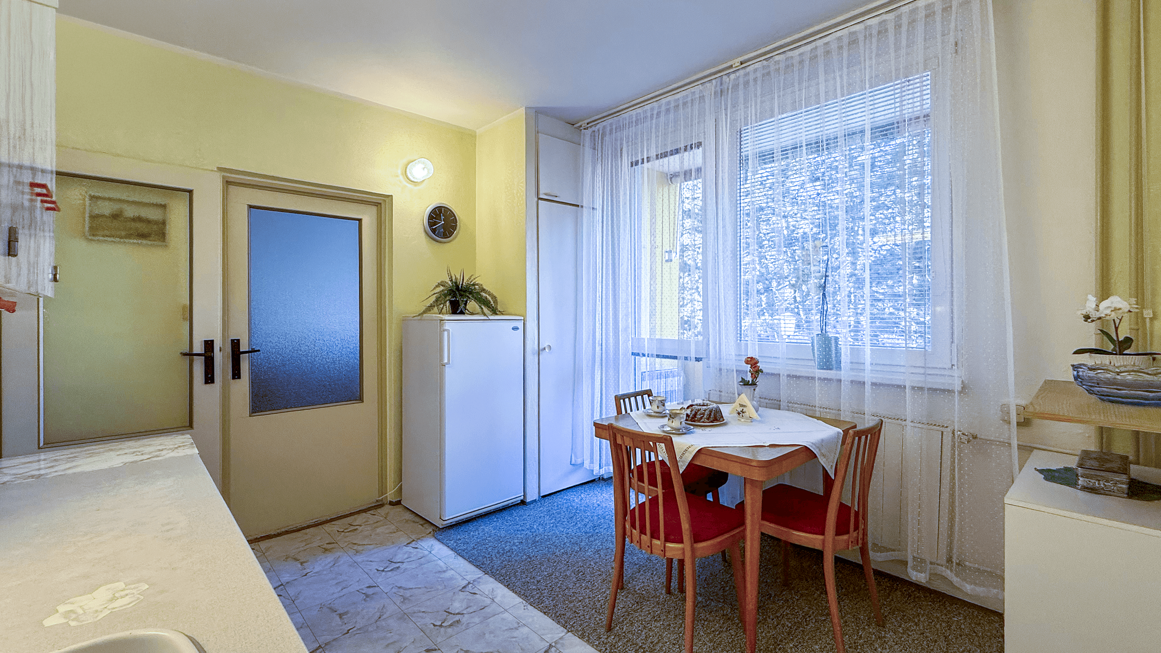 Skvělá orientace: Ložnice na jih (slunce přes den), obývací pokoj a kuchyně na západ (večerní slunce).