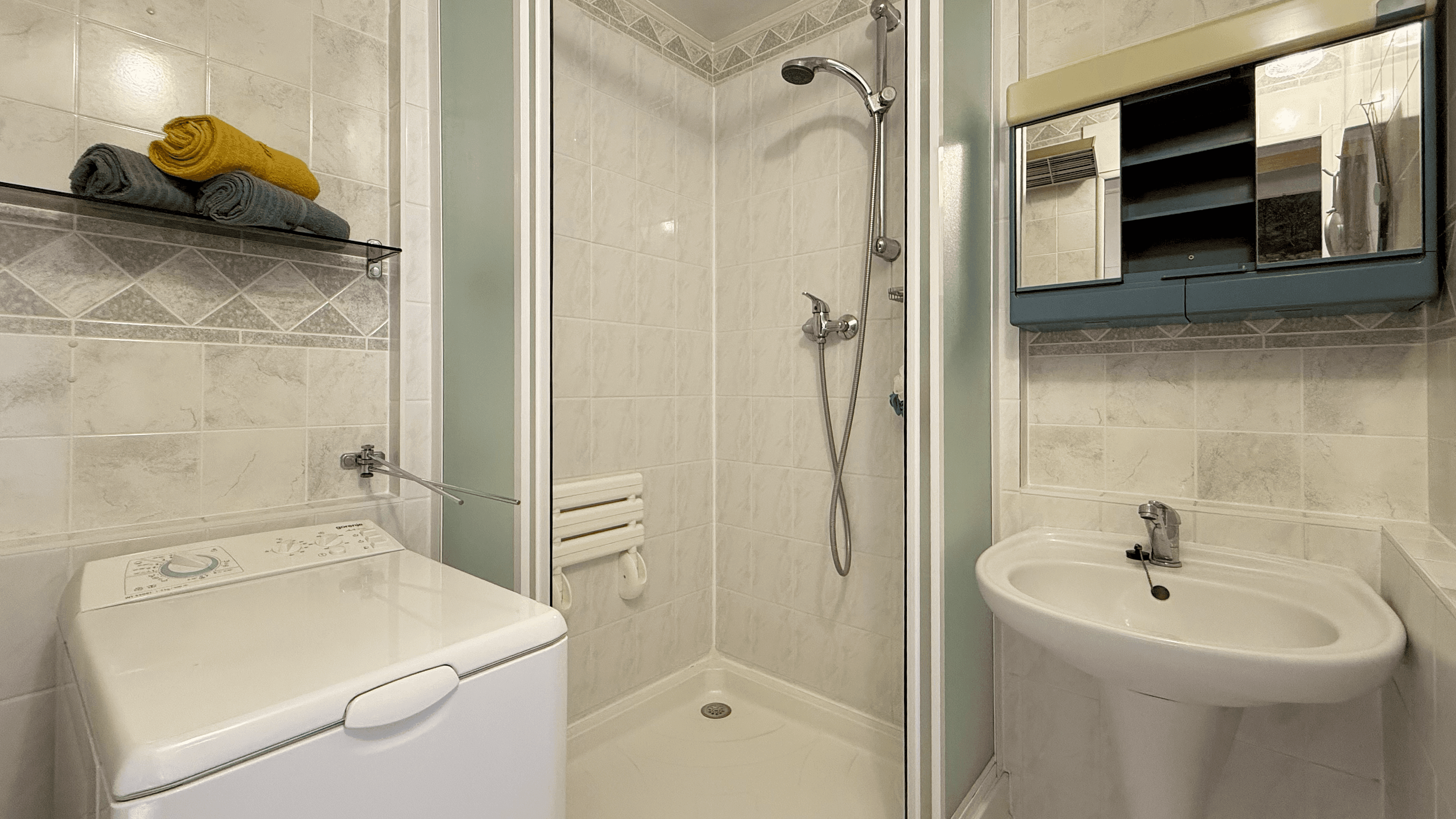 Koupelna a WC: Dispozice nabízí koupelnu se sprchovým koutem a samostatné WC. Jádro je původní (umakart), obložené sádrokartonem a obklady. Sanitární zařízení je funkční a čisté, nicméně prostor vybízí k rekonstrukci dle moderních standardů, stejně tak kuchyně.