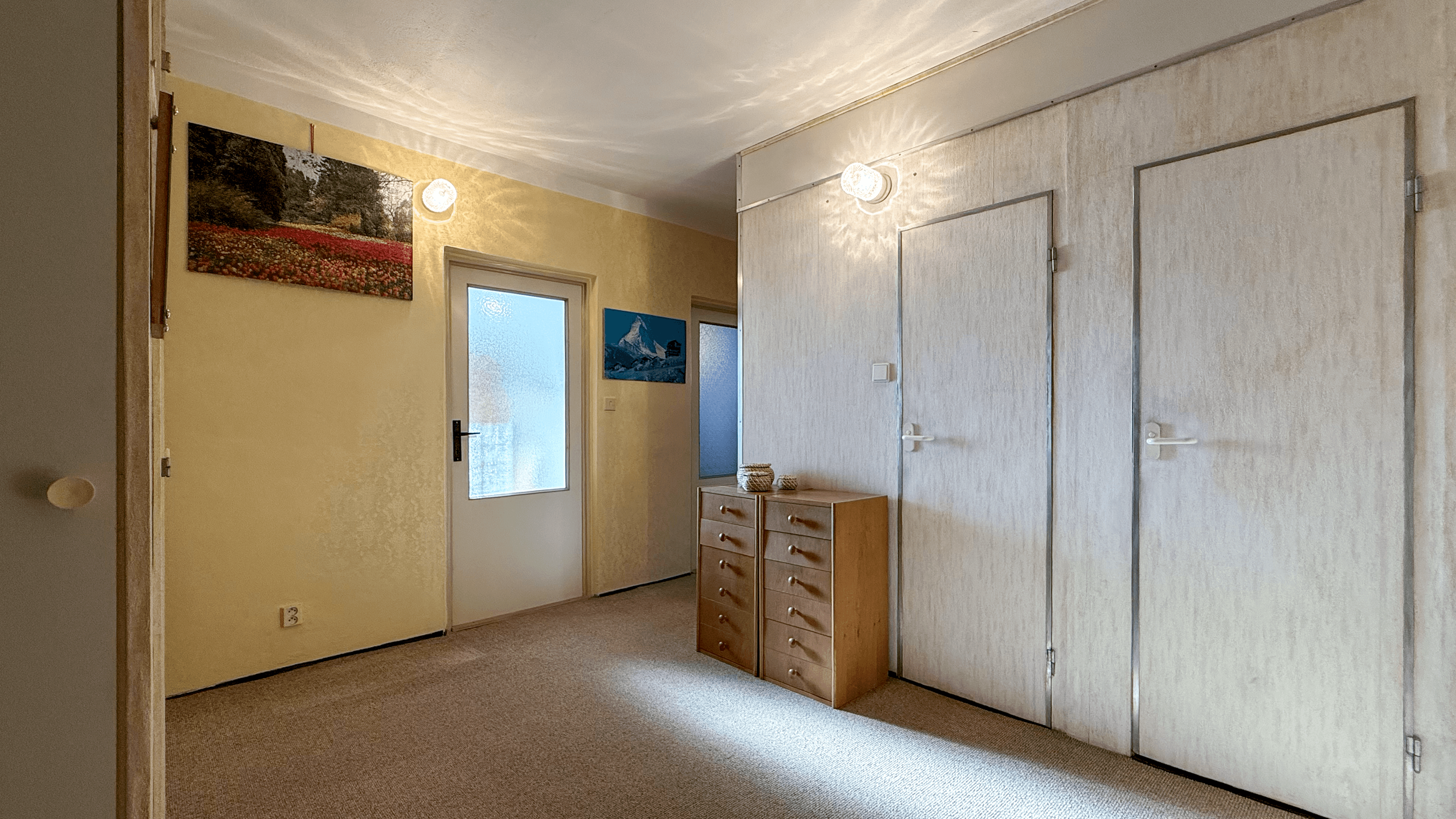 Předsíň (11,5 m²): Velkorysý vstupní prostor nabízí dostatek místa pro velké šatní skříně.