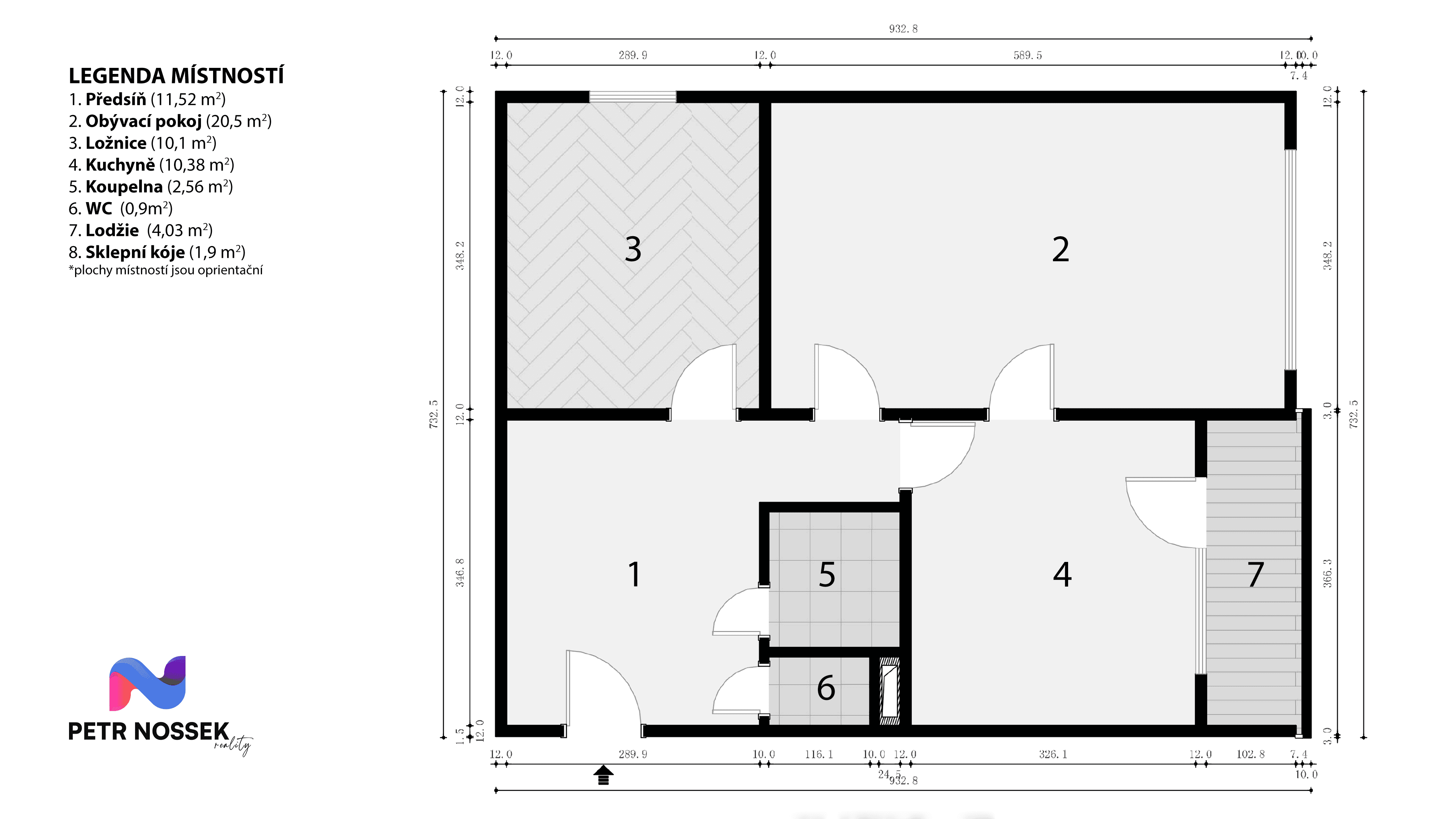 Praktická dispozice: Dva neprůchozí pokoje, prostorná předsíň, samostatné WC a lodžie.