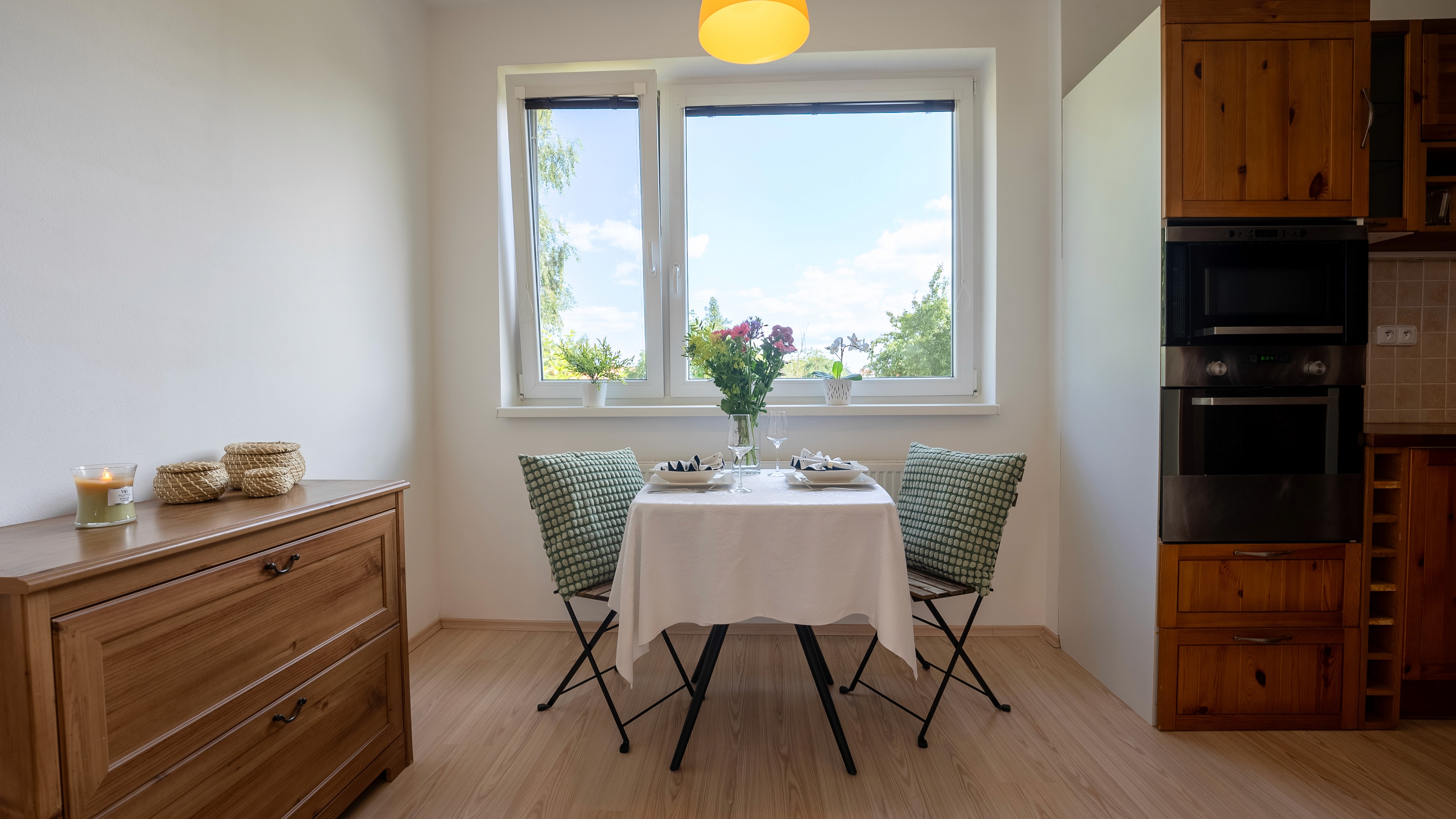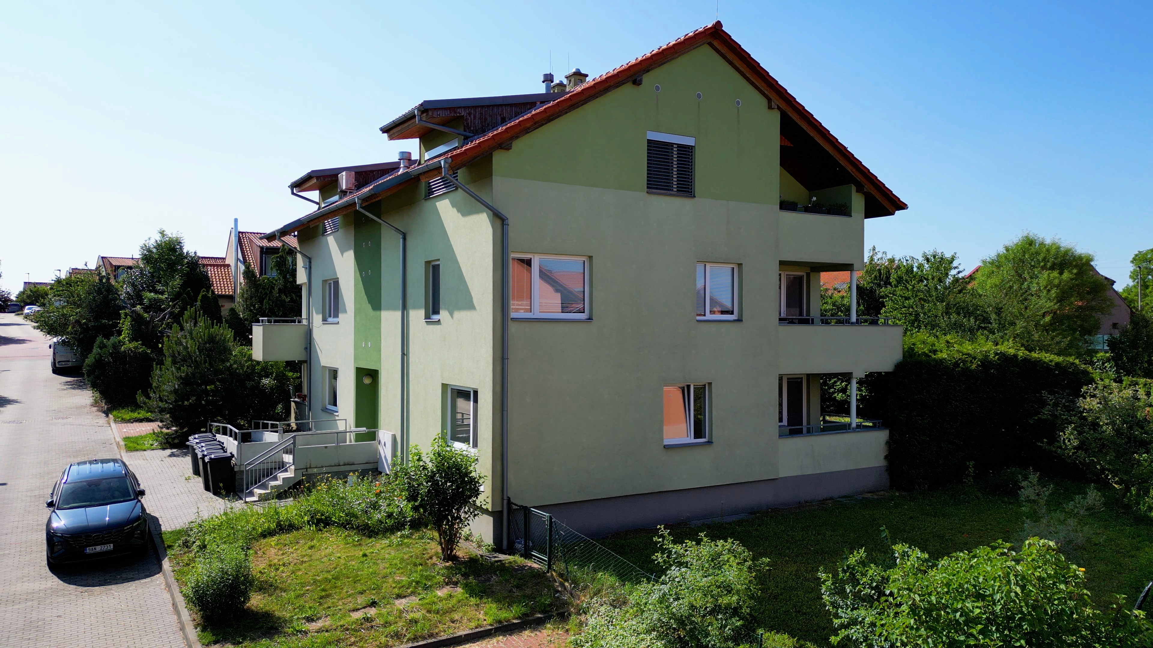 Byt se nachází v nové, klidné rezidenční čtvrti plné zeleně, která vznikla na okraji obce. V okolí se rozprostírají pole, cyklostezky a procházkové trasy, ideální pro relaxaci, sport i procházky s dětmi nebo domácím mazlíčkem. Velkou výhodou je i blízkost zámeckého parku, který patří mezi přírodní dominanty regionu.