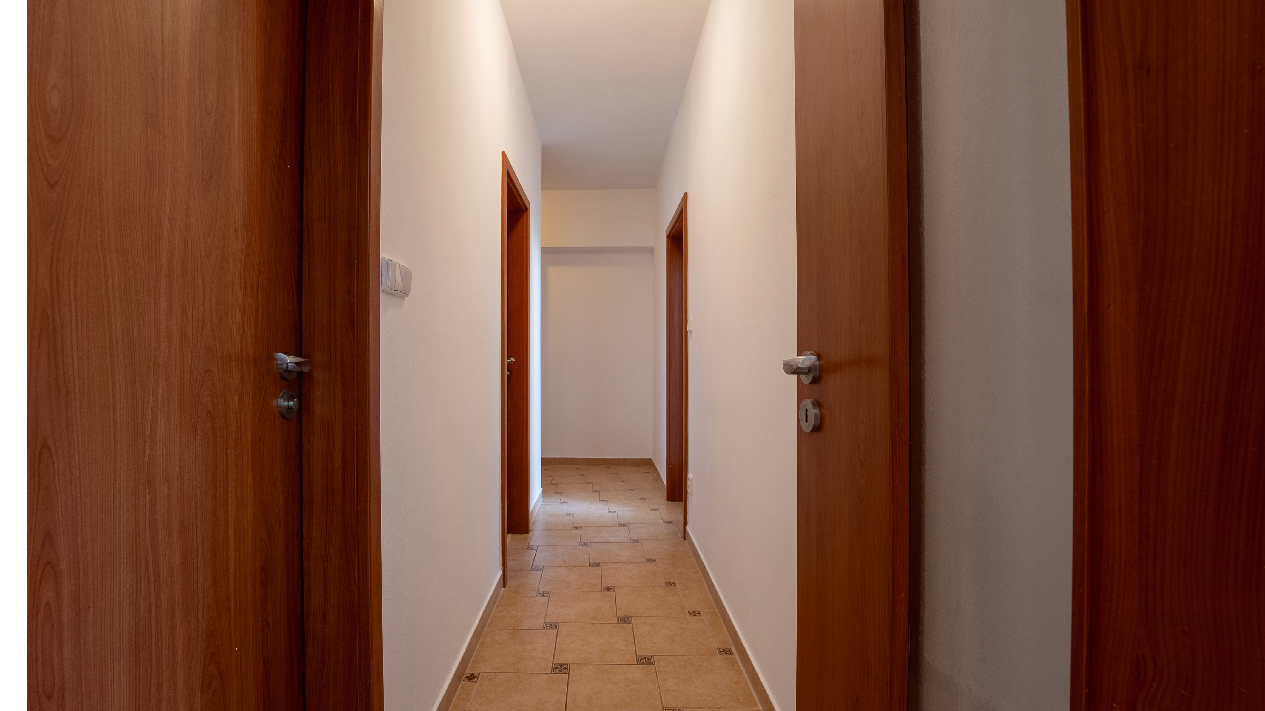 Chodba (9,57 m²): S praktickou vestavěnou šatní skříní.