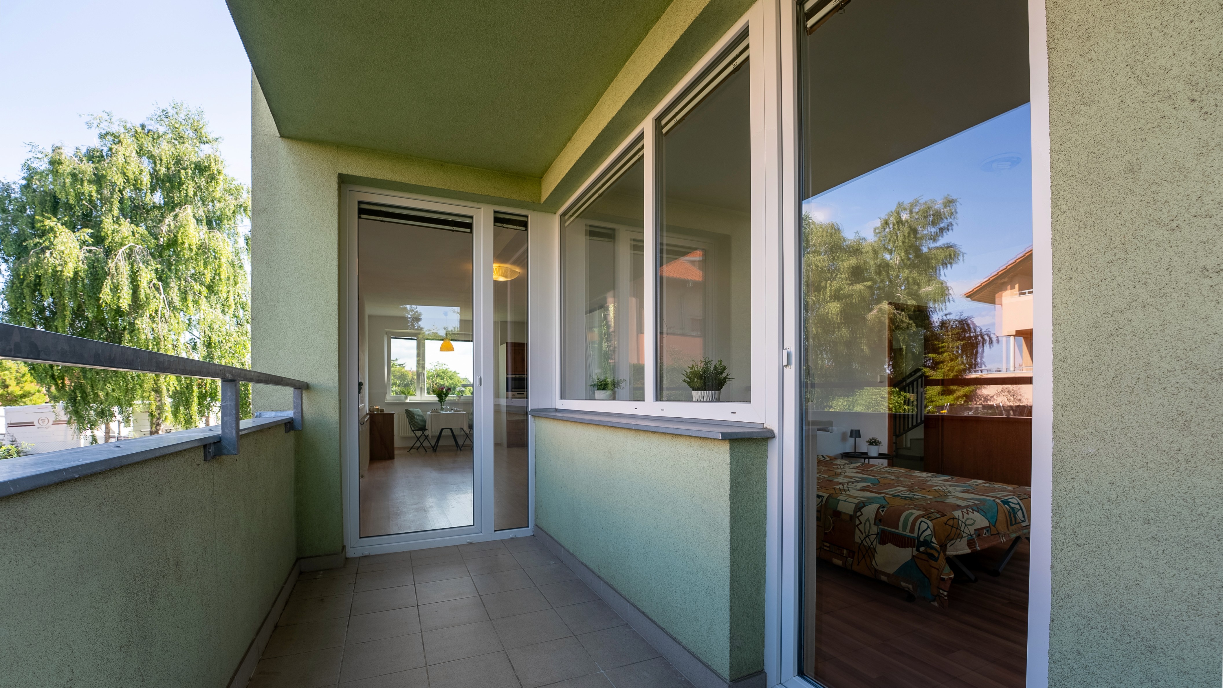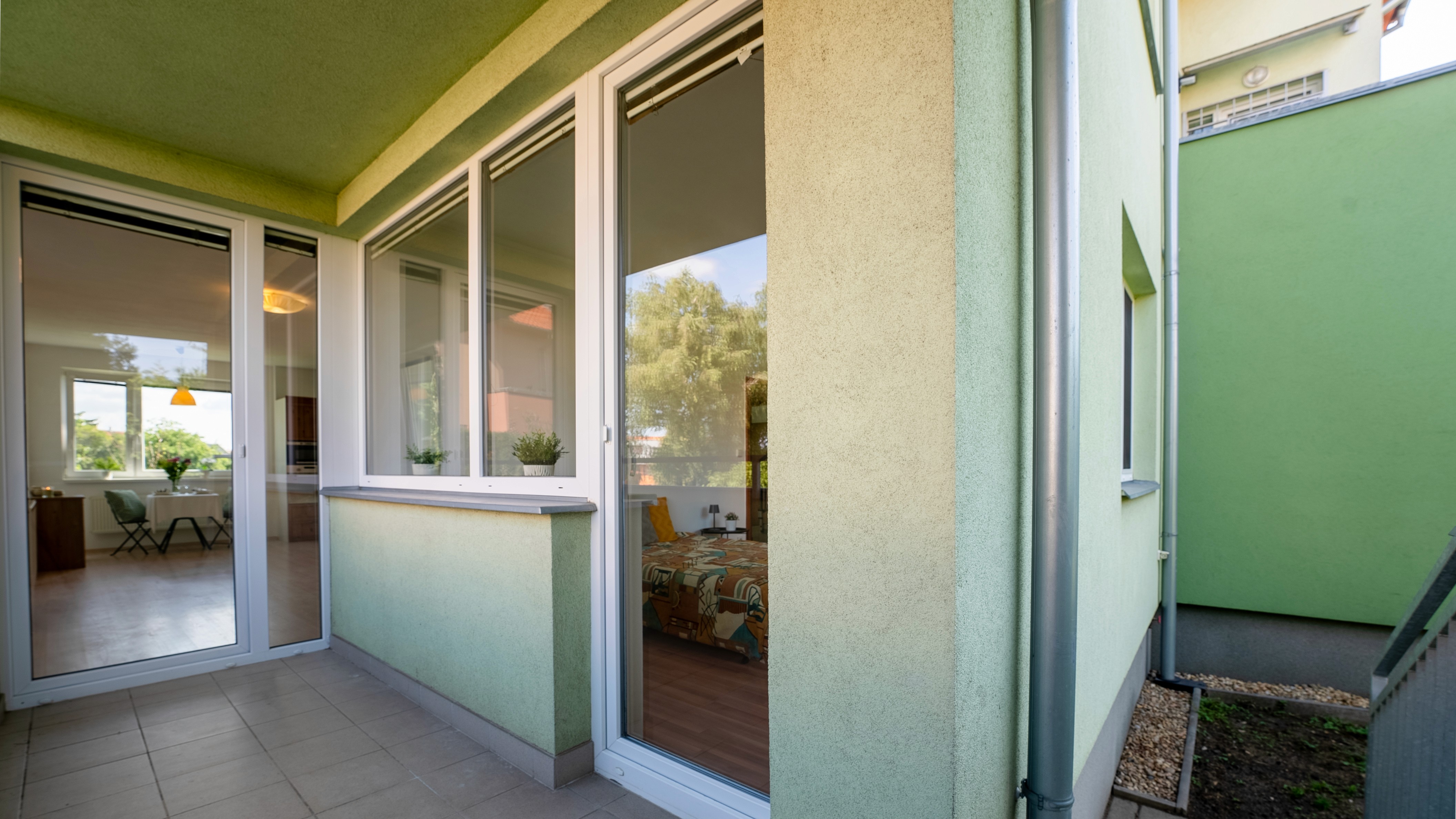 Terasa (7,36 m²): Přístupná z obývacího pokoje i ložnice, ideální pro ranní kávu nebo grilování.