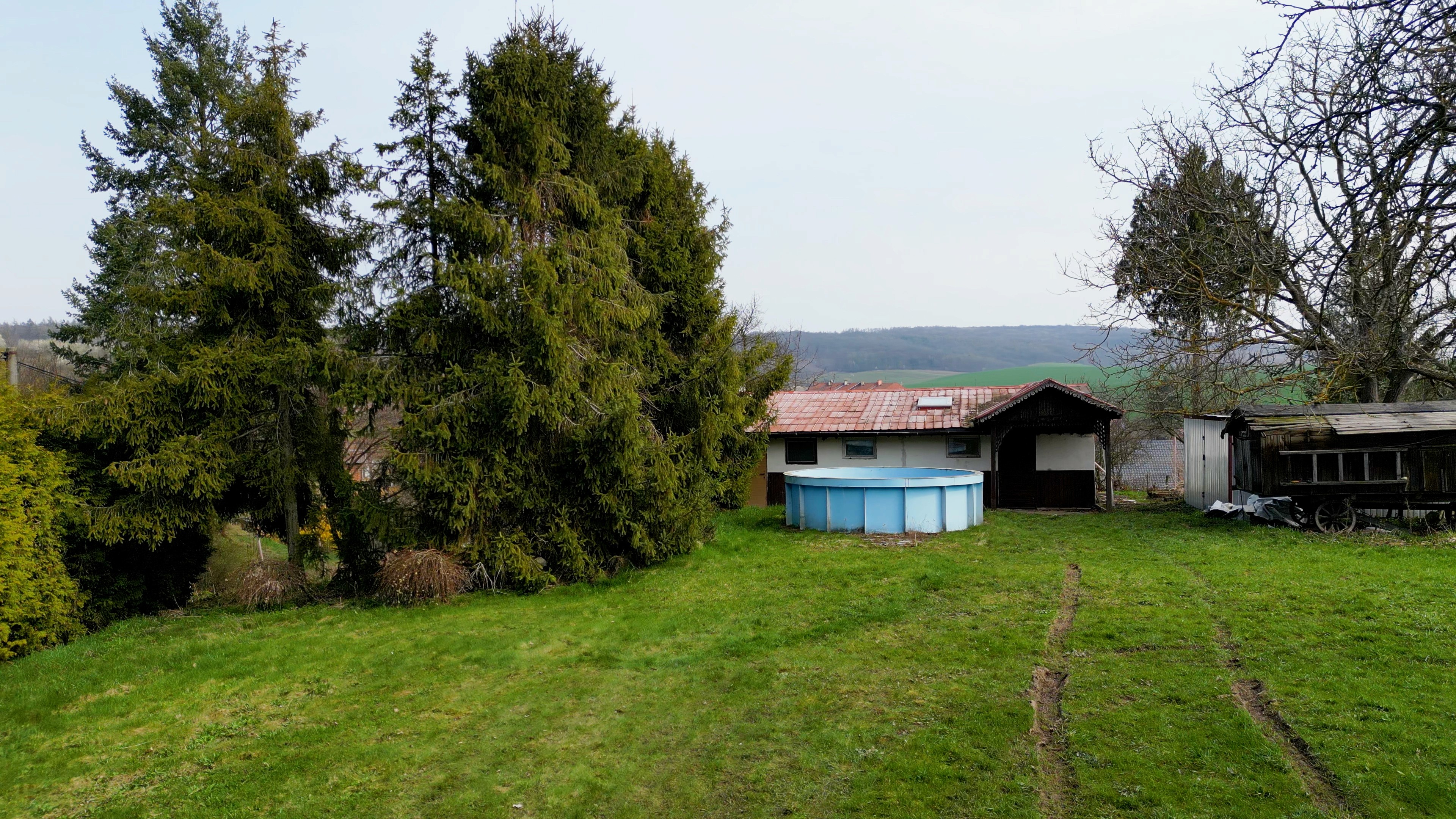 Pozemek a zahrada: K domu náleží velkorysý pozemek o velikosti 1 575 m². Na zahradě se nachází vzrostlé ovocné stromy, které dodávají místu jedinečný charakter. Součástí je také: