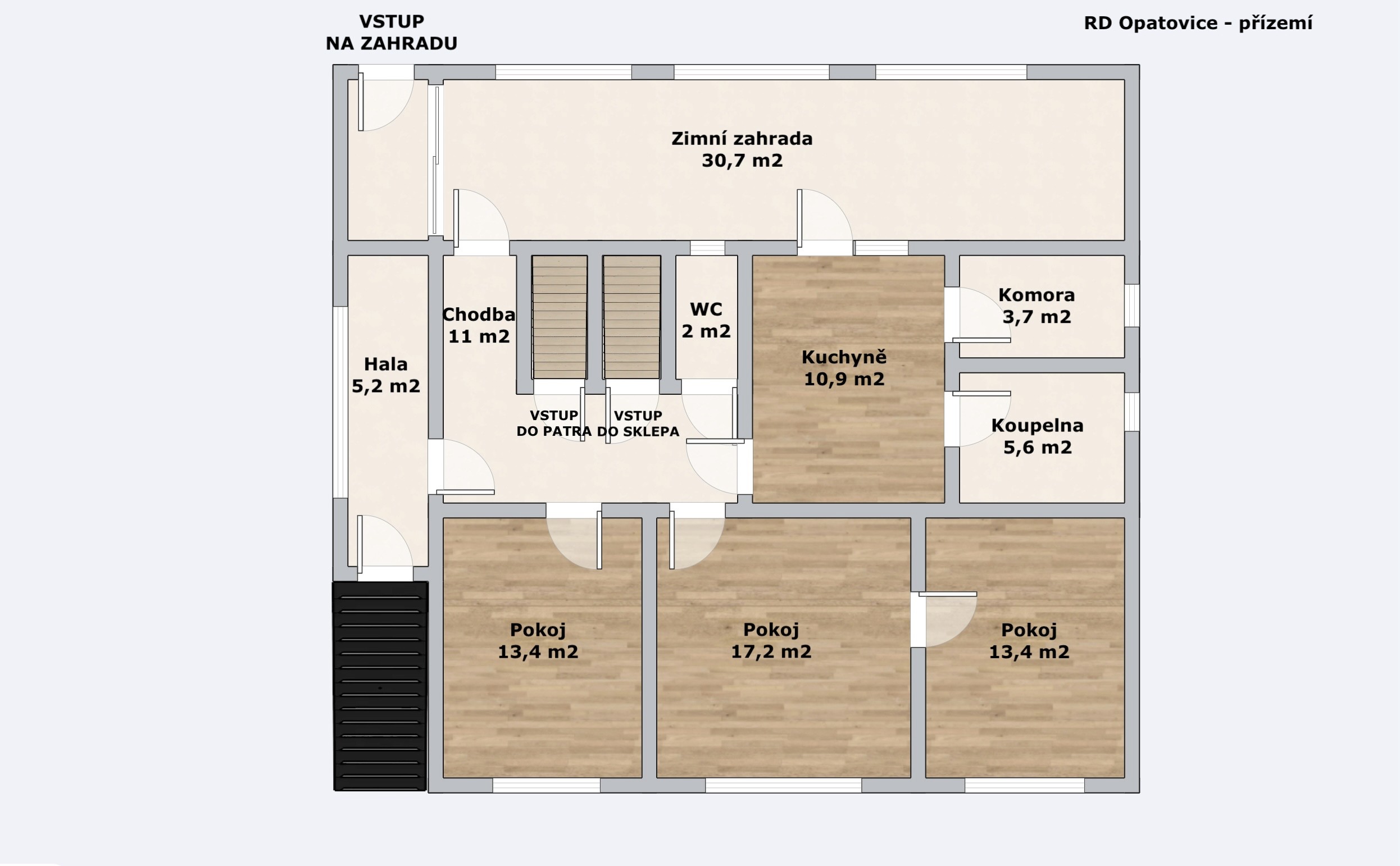 Další prostory: Dům je celý podsklepený, náleží k němu garáž, venkovní stání a prostorná zimní zahrada (30,7 m²).