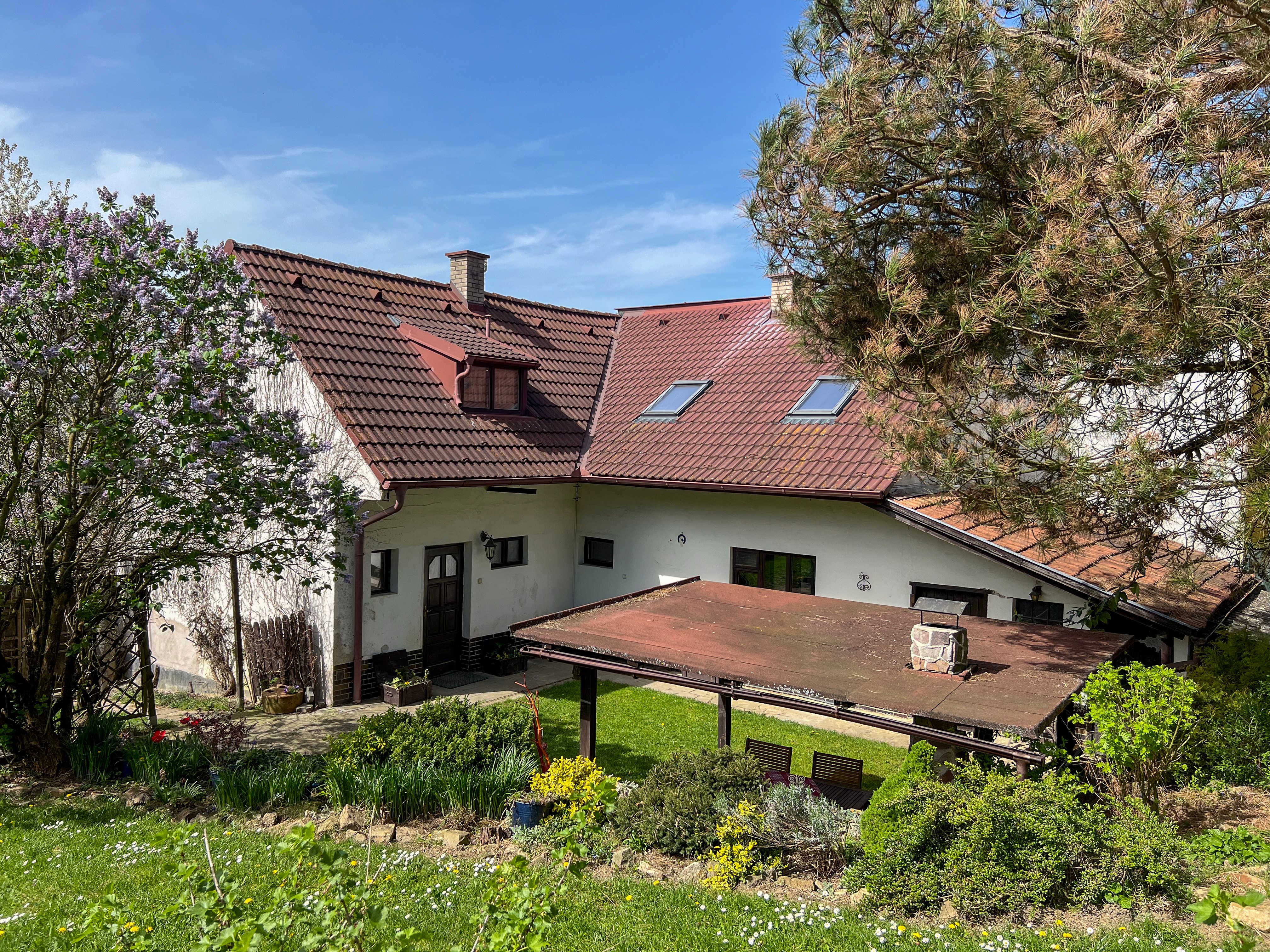 Zahrada a zázemí: Na zastavěné ploše 237 m² se kromě domu nachází také dílna, prostorná terasa pro relaxaci a pergola s posezením a krbem, která je ideální pro rodinné večeře.
