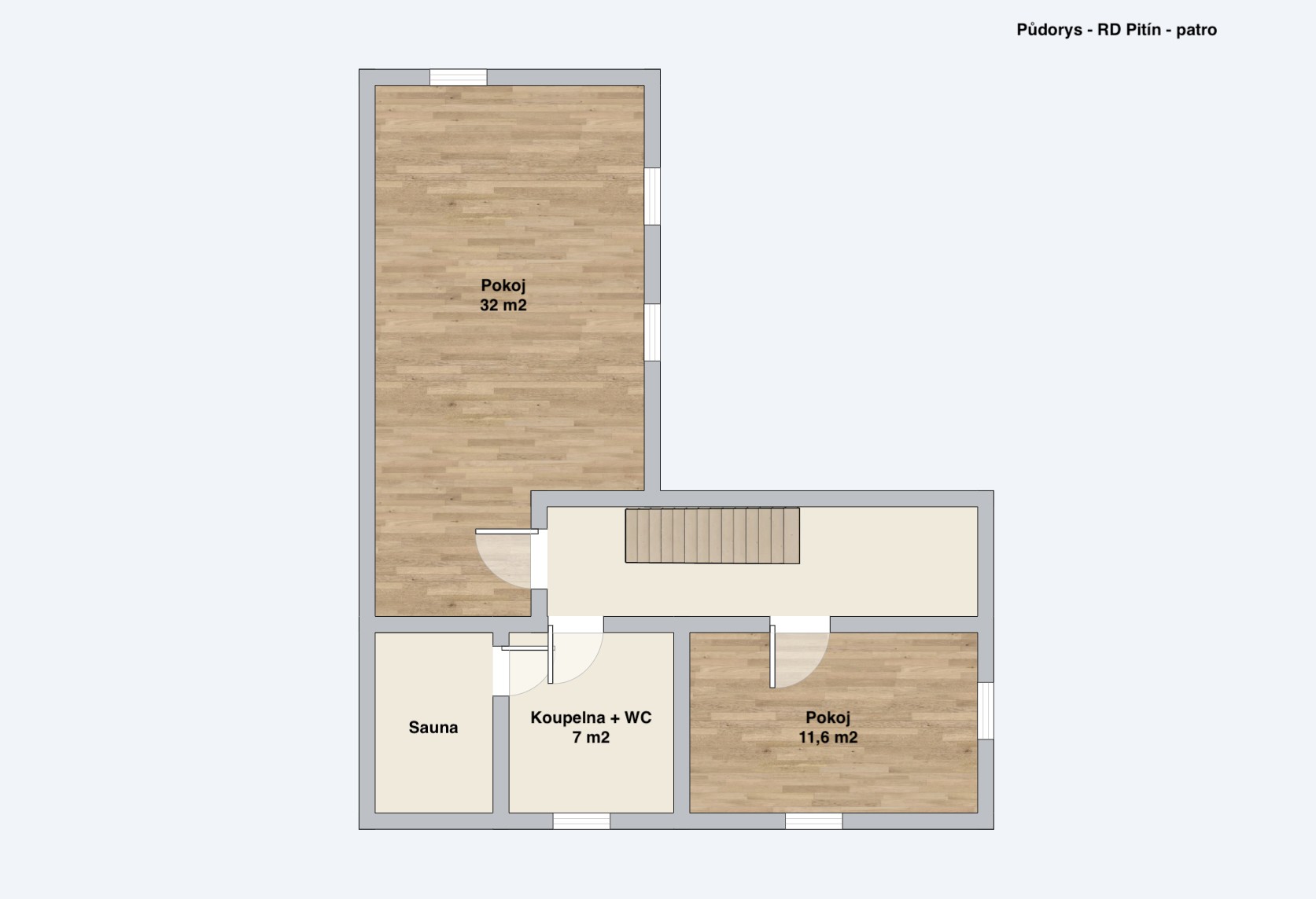 Přízemí a patro: Každé patro disponuje vlastní koupelnou. V koupelně v patře je k dispozici sauna.