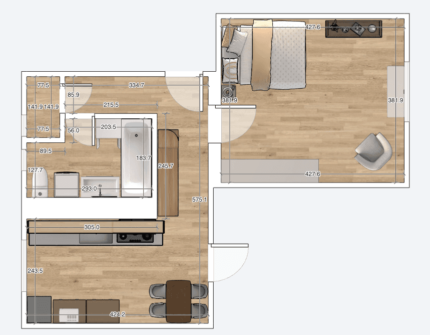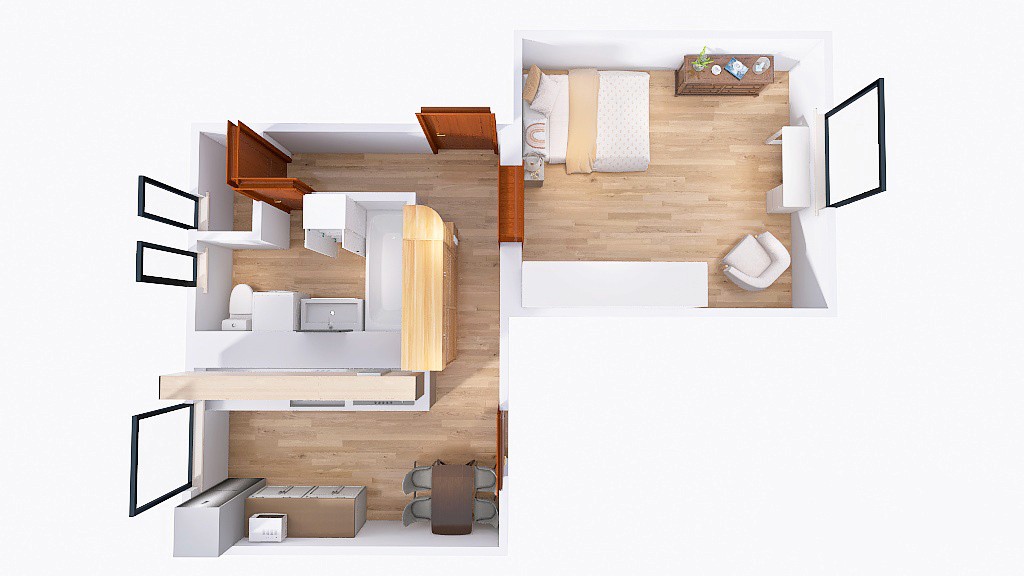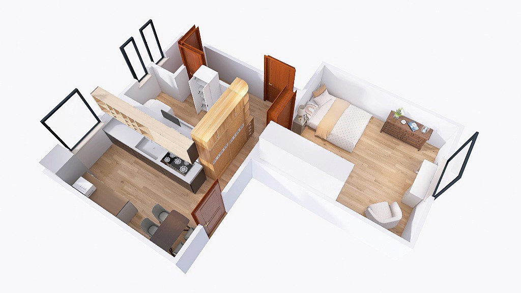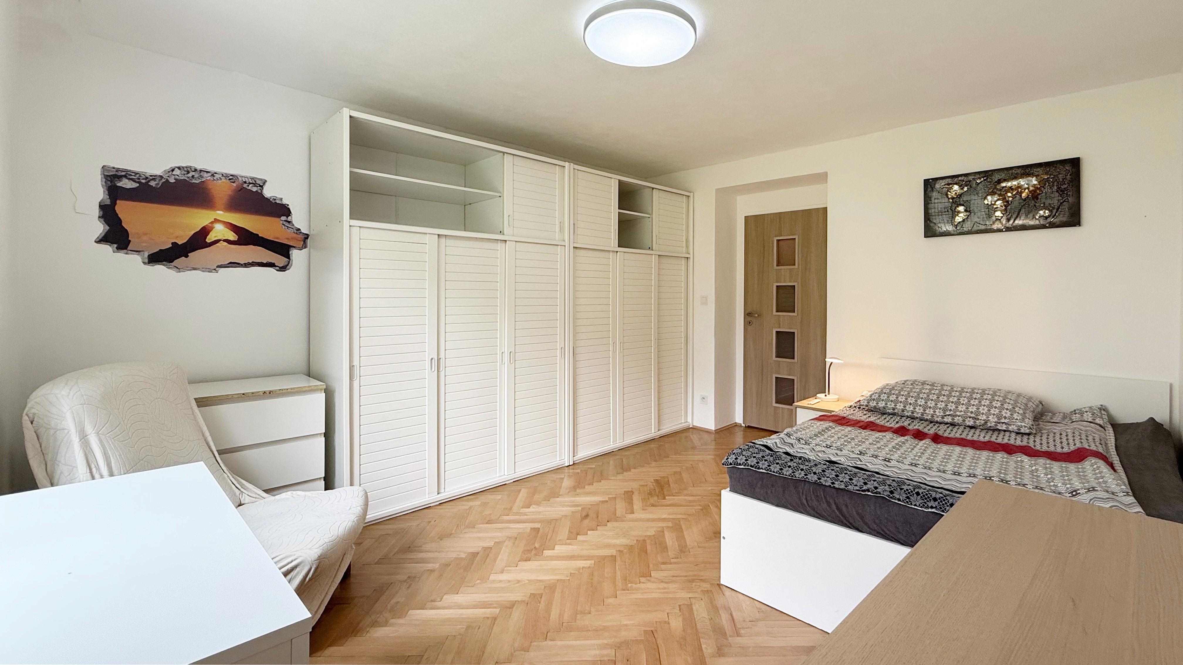 K pronájmu: Světlý a prostorný pokoj, samostatná kuchyně a koupelna.