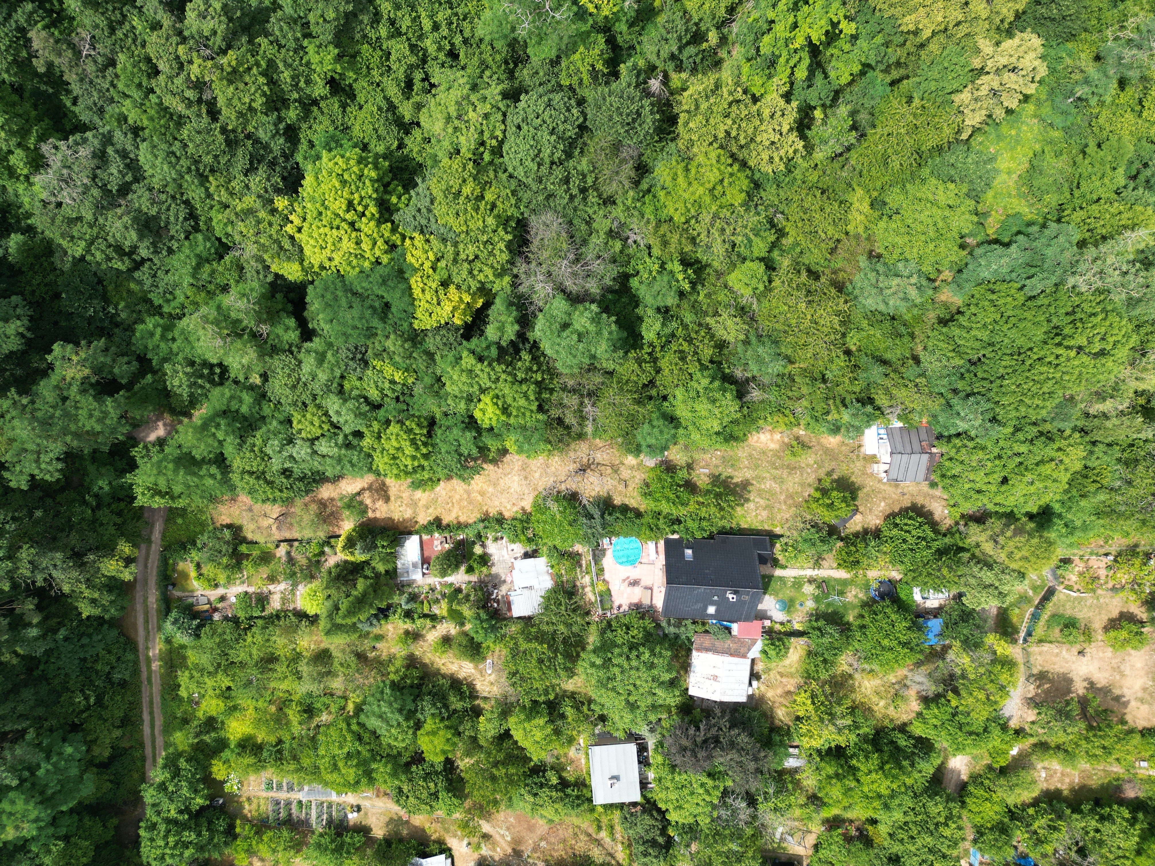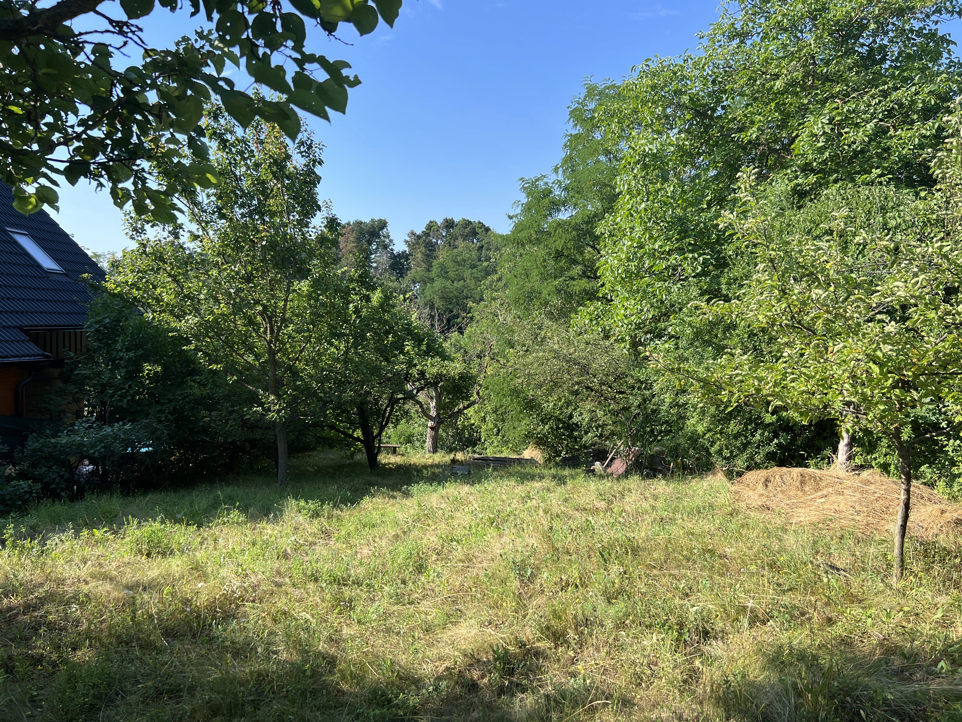 Terén: Vrchní část pozemku je rovinatá, zatímco druhá polovina je svahovitá, což nabízí různé možnosti využití.
