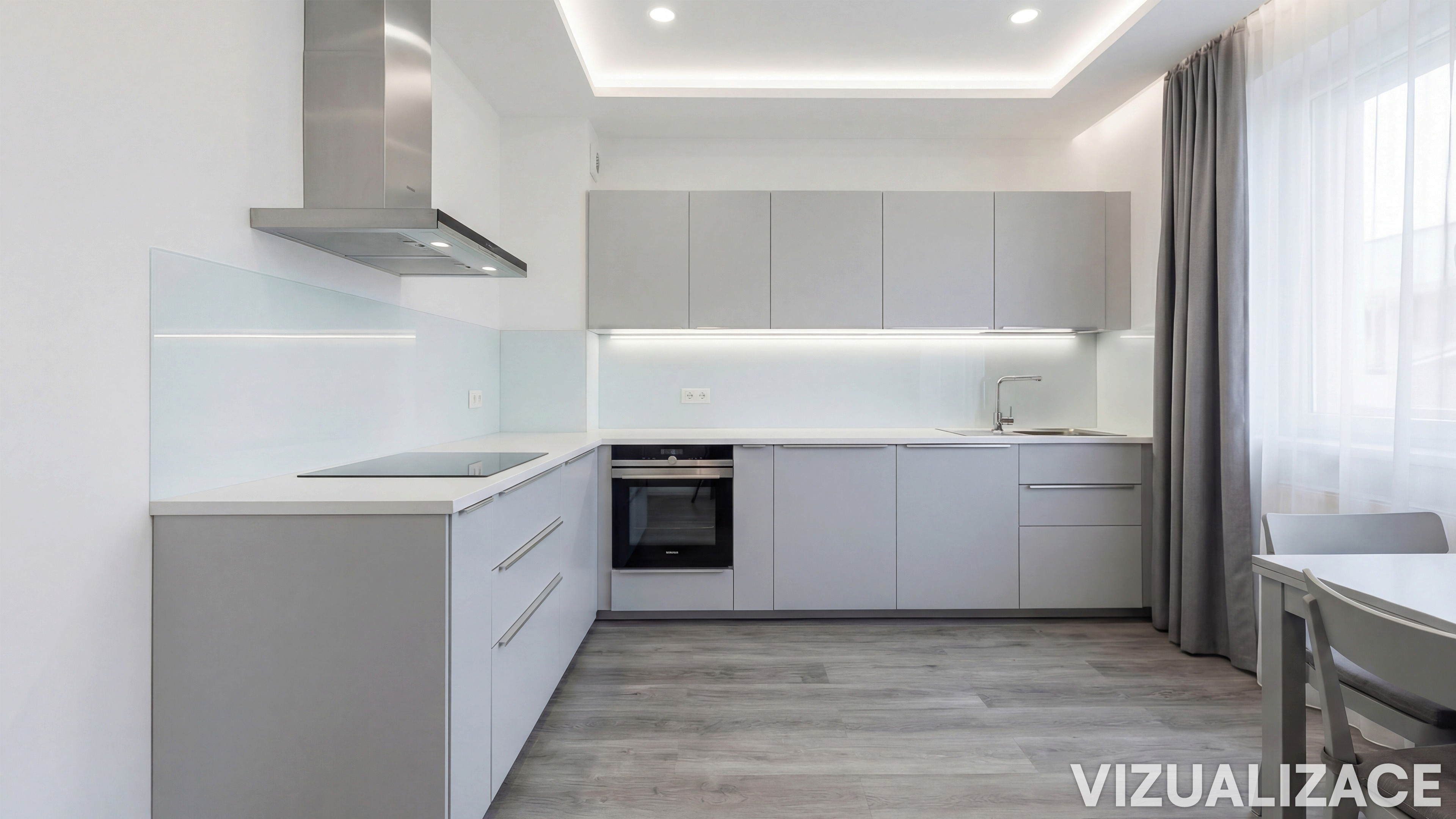 Samostatná kuchyň s prostorem pro jídelní stůl.